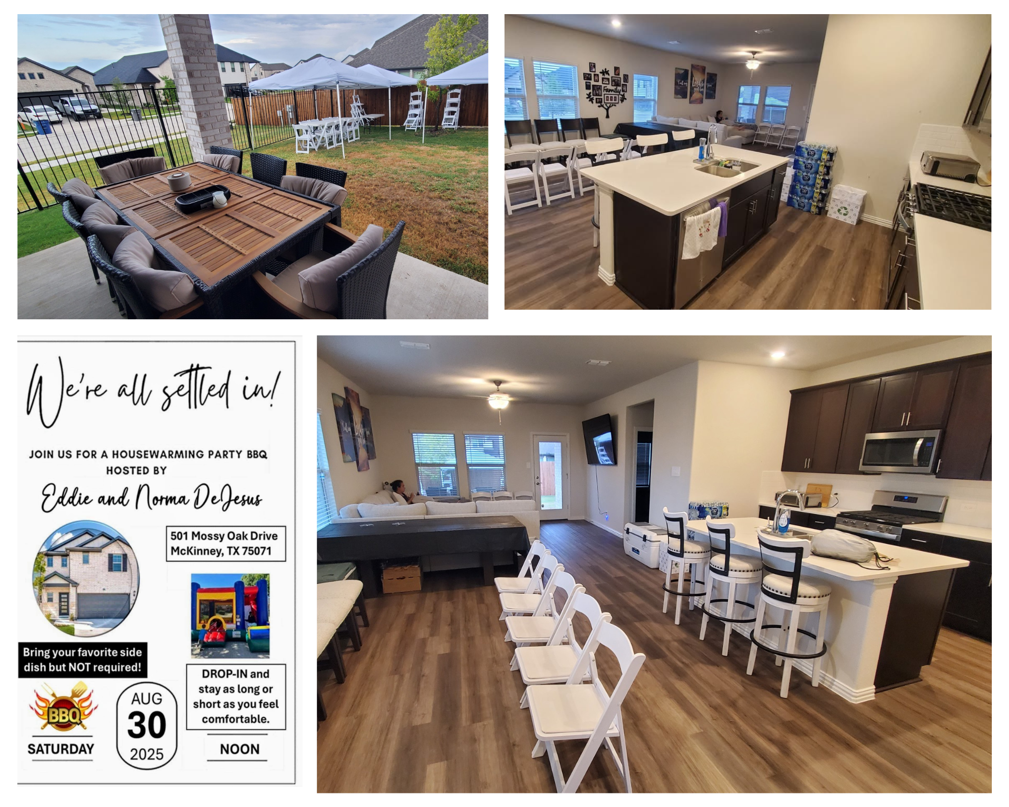 Join us for a wonderful time of BBQ, fellowship, and celebration at the DeJesus family’s housewarming gathering! Come enjoy rich conversation, laughter, and an international buffet of delicious homemade pot-blessing dishes prepared by our guests. The kids will have a blast in the bounce house, and we’ll all be blessed as two members of Hope Ascending, a contemporary Christian praise and worship band, lead us in worship from 2:00–3:00 PM.